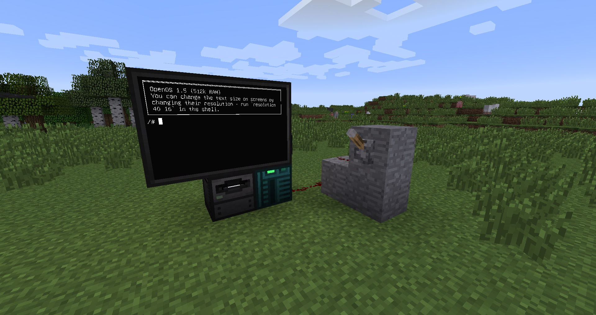 В первую очередь я запустил Майнкрафт. Потом я создал новый мир и вошёл в игру. Переключившись в творческий режим, что означает что я могу создавать в игре любой предмет или блок, который мне нужен, я построил компьютер из мода OpenComputers. По этому поводу есть много обучалок, так что пришлось потратить время на изучение того, как оно работает. После нескольких неудач я смог установить TCP-соединение с реальным миром!