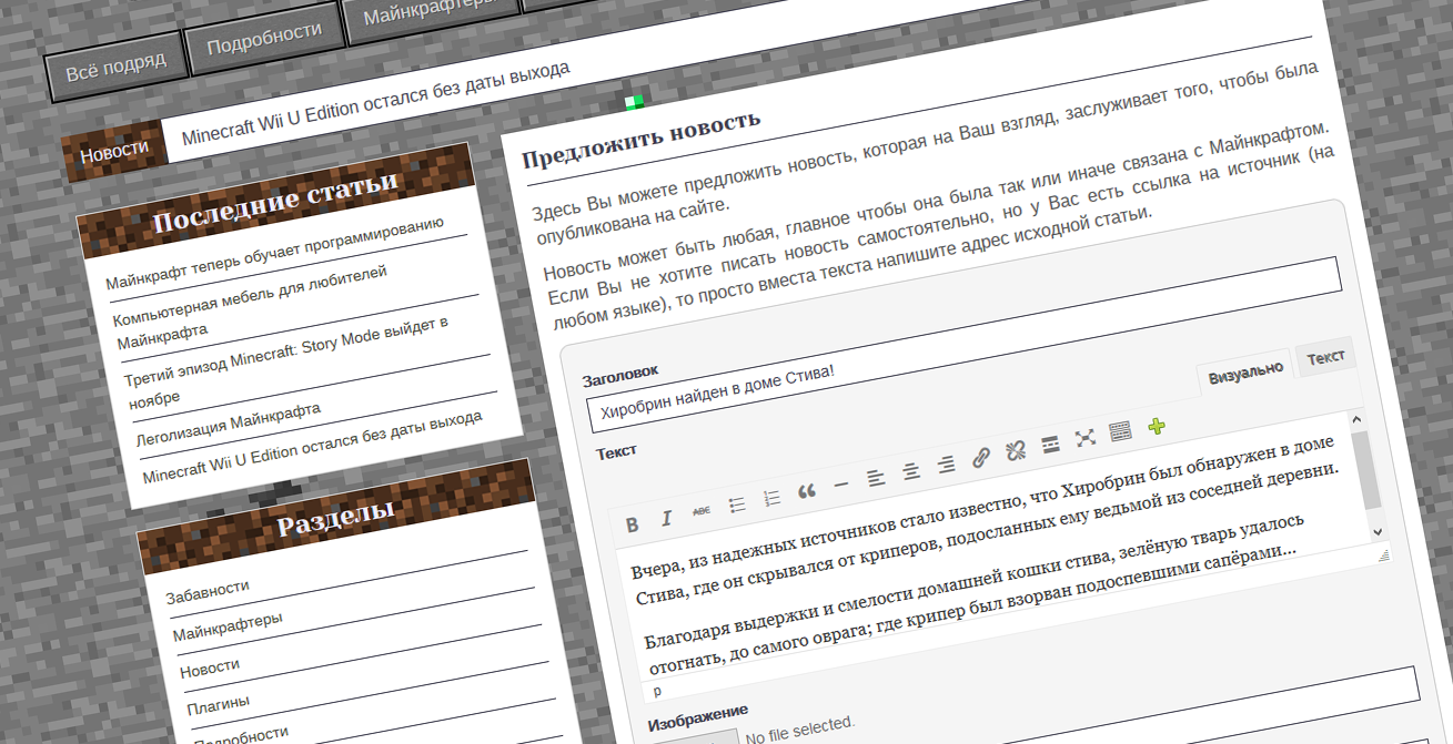 Под таким (или каким-то любым другим) заголовком Вы можете опубликовать новость на MinecraftMain.ru.