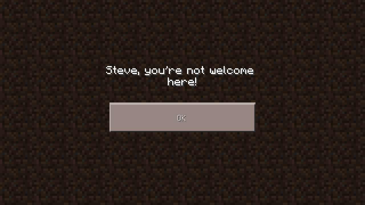 Первый я назвал просто NoSteve, он призван запретить вход на сервер игрокам с именем Steve — ибо на MCPE такое стоит по умолчанию.