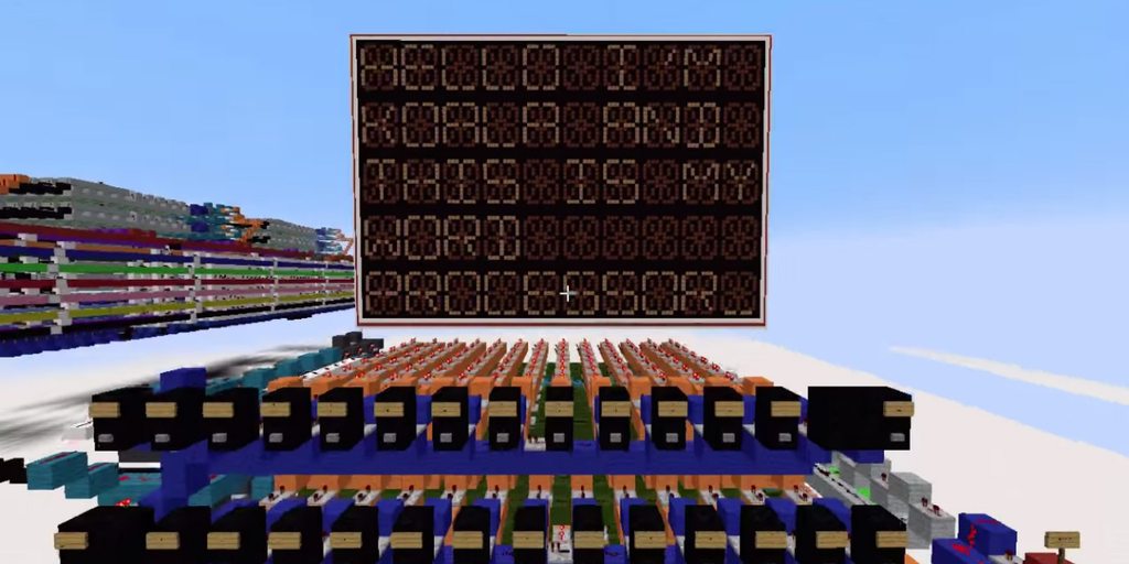 Майкнрафт-билдер создал текстовый процессор — полноценный с клавиатурой, монитором и всё это полностью средствами игры. И это не просто не просто стилизация. Постройка полноценно функционирует когда нажимаются кнопки, может загружать тексты из памяти. Почти два года ушло на реализацию, и автор планирует расширить постройку в полноценный, работающий компьютер.