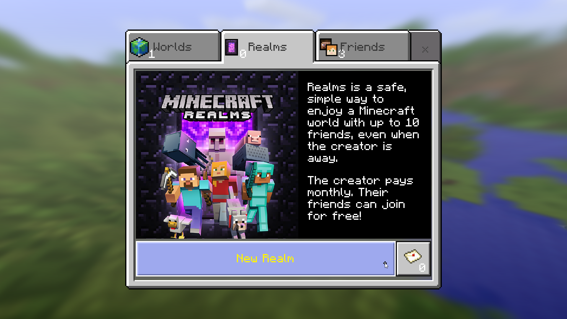 Не знаю почему, но вчера на устройстве Android я не обнаружил возможности подключить Realms бесплатно. Зато сегодня, после того как мой Minecraft Windows 10 Edition обновился до версии 0.15.0, я сразу же смог подключить бесплатный Realms.