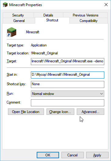 Делается это достаточно просто. Для того чтобы запустить «демо Майнкрафт» надо запустить лаунчер с дополнительным ключом «—demo». Я для этого, просто добавил ключ в параметрах ярлыка: