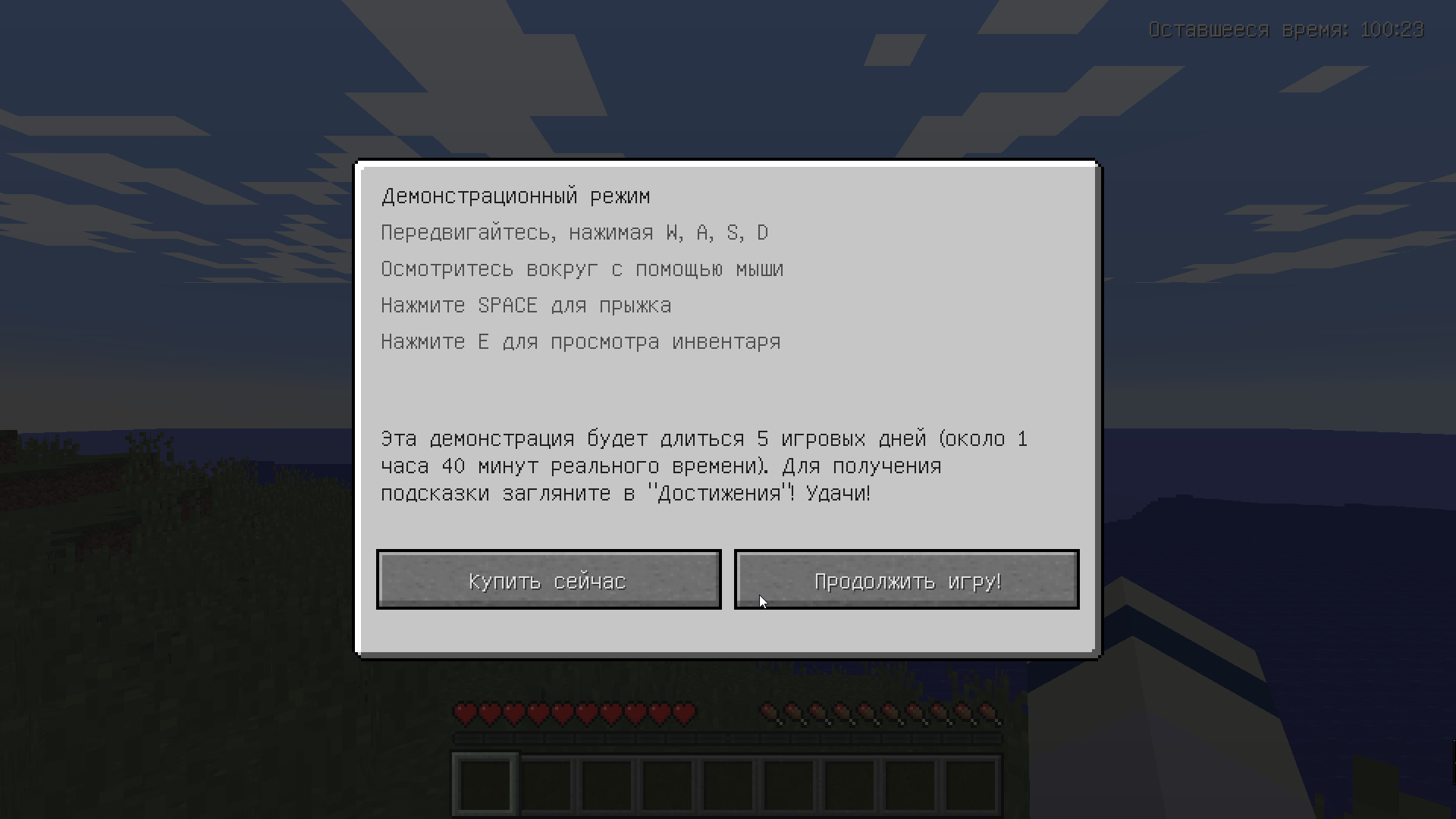 После этого при запуске Майнкрафта, его главное меню будет модифицирована, а возможности игры буду ограничены демонстрацией: