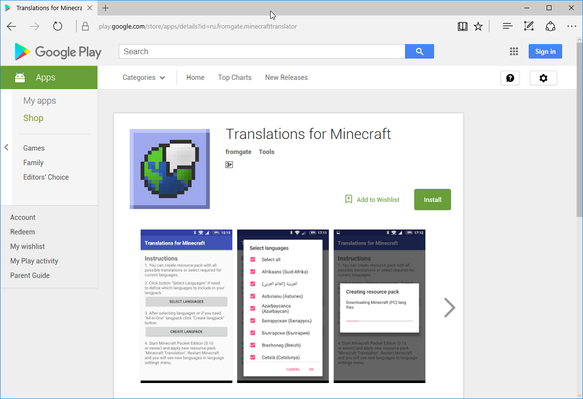 Приложение Translations for Minecraft опубликовано в GooglePlay, после завершившегося бета-теста.