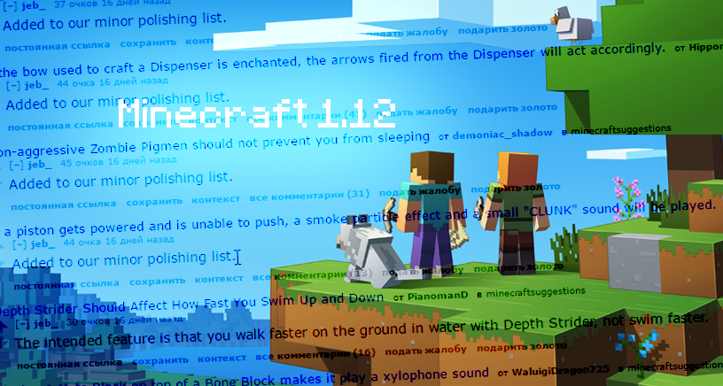 Сразу хочу предупредить, что информация содержащаяся в данной статье является предположениями, основанными на некоторых сообщения Джеба в сабредите посвящённом предложениям в Майнкрафте. Сообщения были оставлены во второй половине декабря, незадолго до того, как было объявлено о начале работ на версией 1.12.