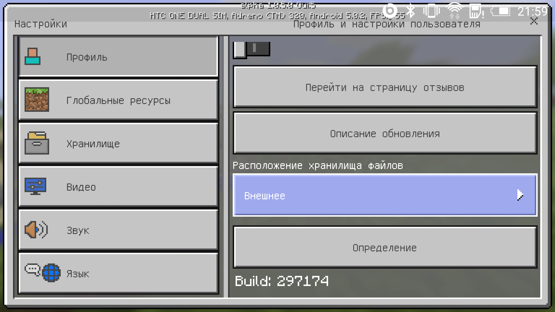 Как выяснилось, это связано с тем, что игрокам решили предоставить доступ где хранить файлы: в памяти устройства или на диске. На мой взгляд, это спорное решение изначально. Поскольку сейчас Android устроен так, что не всегда понятно является ли «внешняя» память по-настоящему внешней или в устройстве SD-карта вообще не установлено. На моем телефоне почему-то по умолчанию была выбрана память устройства и возникли все описанные выше проблемы, а при использовании карты памяти — всё заработало как надо.
