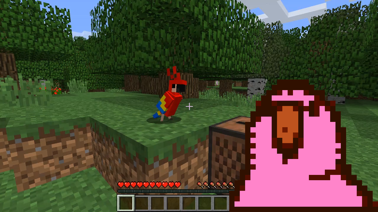 Попугаи в Майнкрафте умеют танцевать. Для этого им нужно включить проигрыватель. В процессе танца они меняют окраску. Окраска у них меняется и в воздухе. Правда, на плече у игрока они ведут себя прилично, очевидно в рамках соблюдения субординации.