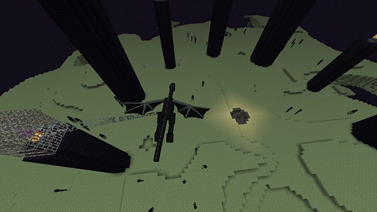 Отправившись в Энд, ты попадаешь в мир бесконечной беззвёздной ночи — мягкая искрящаяся пустота, в которой парят желтоватые острова… эээ… Из чего же они сделаны?!
