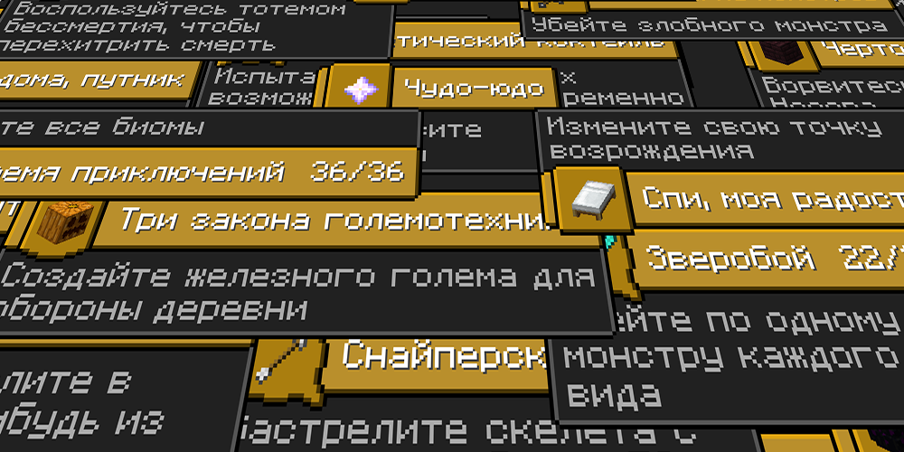 Главная особенность advancements (так называется новая система достижений на английском) — это возможность добавления новых достижений, используя конфигурационные файлы. То есть все достижения, существующие в игре, не «запрограммированы», а описаны в json-файлах. И при желании, вы сможете самостоятельно добавить в игру новые достижения.