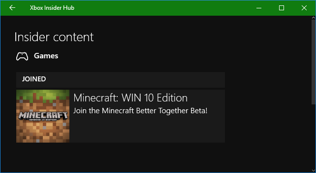 Для Windows 10 и Xbox One выпущено специально приложение «Центр предварительной оценки Xbox» (Xbox Insider Hub). Это приложение позволяет переключать активную версию Minecraft, которая будет потом загружаться из магазина приложений обычным способом.