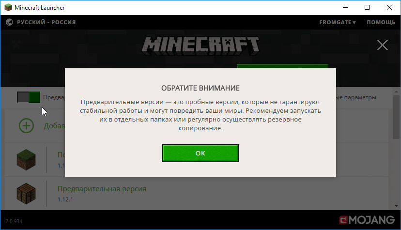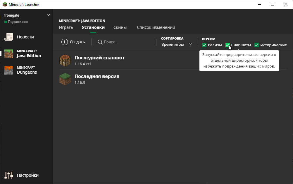 Для Java-версии регулярно выпускаются предварительные версии, которые также известны как снашпоты (snpashots). Для того чтобы получить к ним доступ, необходимо перейти в лаунчере на закладку «Параметры запуска» и включить переключатель «Предварительные версии».