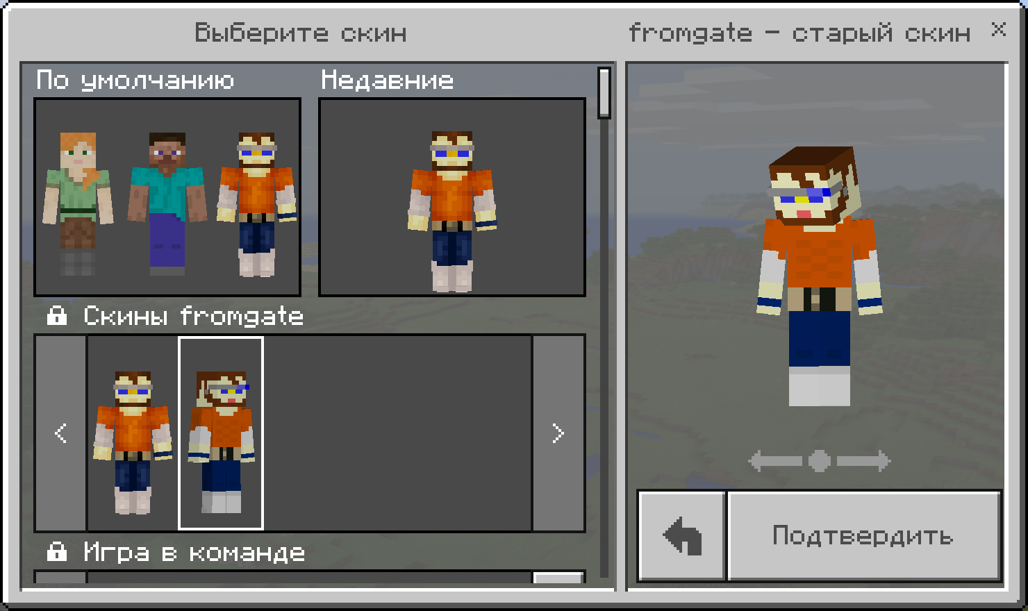 Возможно вы заметили, что здесь ключи несколько отличаются о тех, что были использованы в skins.json. Это связано с тем, что для достижения однотипности, ключи формируются следующим образом. Название набора скинов всегда будет начинаться с «skinpack.» и дополняться значением localization_name из skins.json. Название скина всегда будет начинаться со «skin.», к нему будет добавляться название набора скинов (т.е. в данном случае «fromgate»), а уже потом к нему будет прибавляться значение поля localization_name конкретного скина.