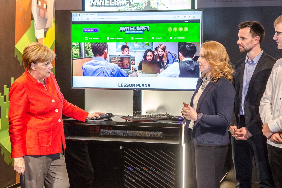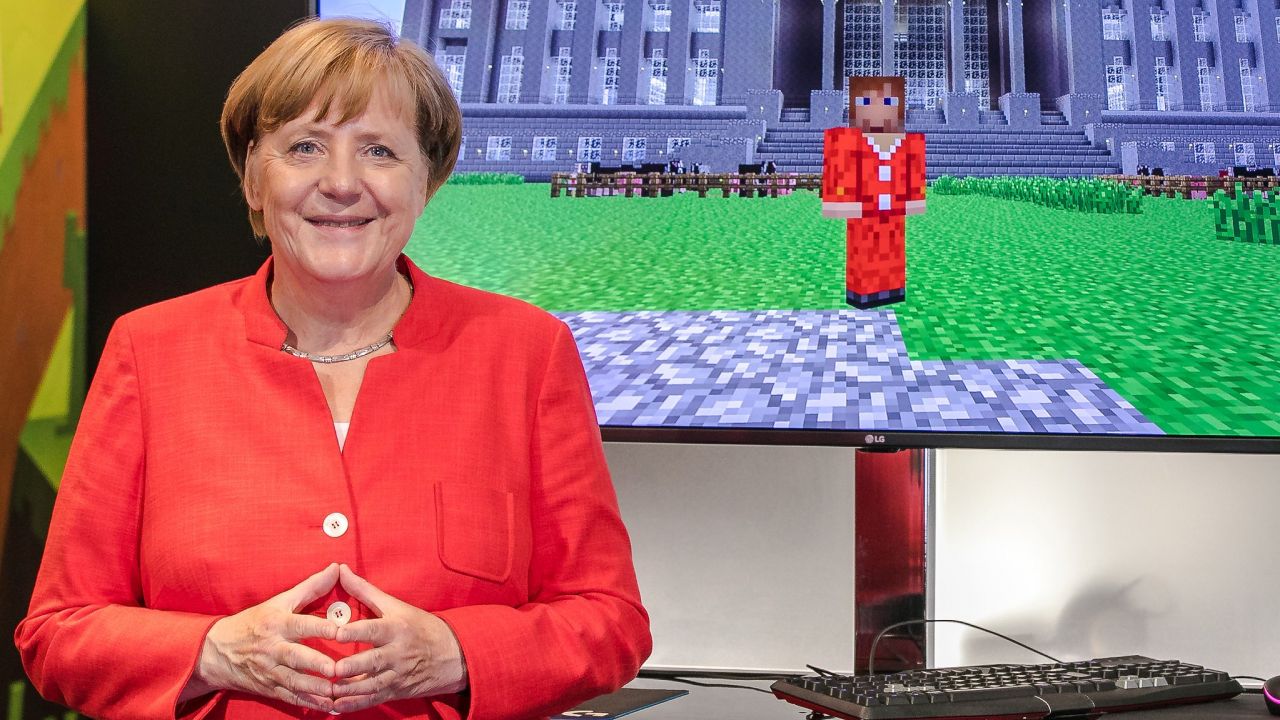 Ну, а если серьёзно, то это фото с GamesCon 2017, где канцлер Германии приняла участие в церемонии открытия. Ей представили Minecraft Education Edition, после чего она сказала: «Наша задача обновить традиционные техники обучения для будущих поколений».