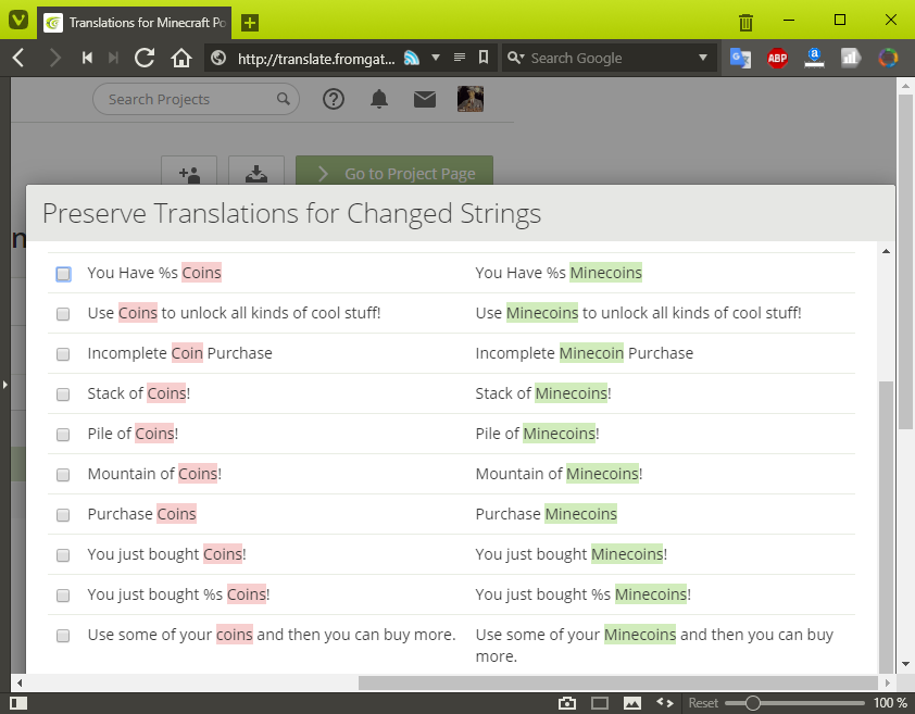 Загружая обновлённые переводы из Minecraft 1.2.1, я обнаружил, что игровая валюта, которая используется для покупок в магазине Minecraft, была переименована.