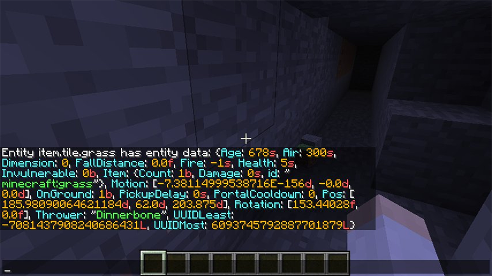 Кстати, ещё Диннербон также показал как будут выглядеть подробные данные о сущности, выведенные с использованием команды /entitydata (см. иллюстрацию в начале статьи). Форматирование смотрится отлично, а то насколько подробно расписаны все теги данных просто поражает.