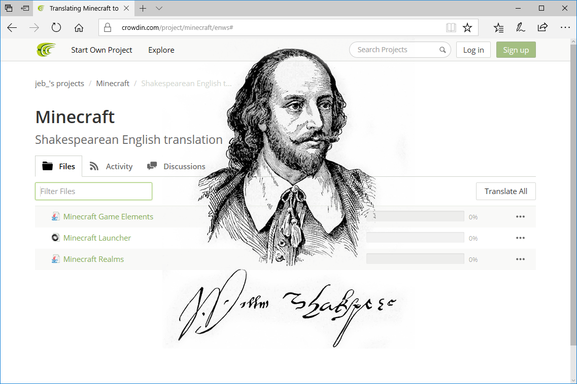 И вот, сегодня проект переводов на портале Crowdin, пополнился языком для — Shakespearean English. Пока там не переведено ни одной строчки, но насколько мне известно, скоро там закипит работа. Намерения у переводчиков самые серьёзные.