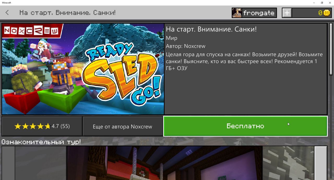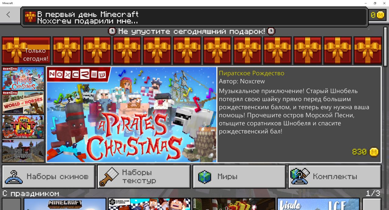 Наступил первый день Майнкрафта! — первый из 12 дней новогодних подарков от разработчиков Minecraft. Спешите получить в подарок шаблон мира «На старт. Внимание. Санки!» от команды Noxcrew.
