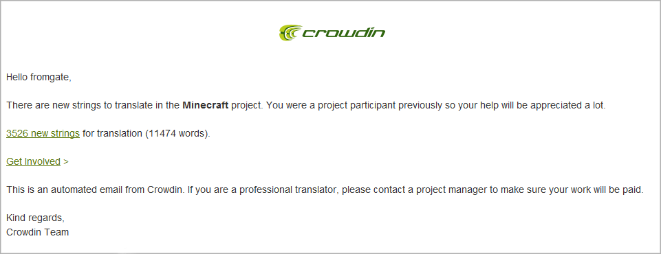 Если вы принимали хоть какое-то участие в проекте перевода Minecraft, то наверняка получили сегодня уведомление о том, что в проект добавлено 3526 новых строк для перевода. Однако если зайти в проект перевода на Crowdin, видно что никаких изменений не произошло.