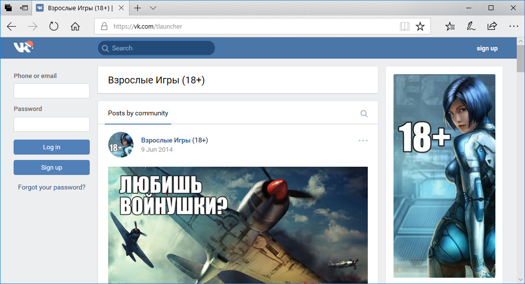 Примечательна, кстати, ситуация с адресом сообщества. Сейчас по адресу vk.com/tlauncher открывается сообщество «Взрослые игры (18+)». Внешне ничего фривольного. Правда я не пробовал кликать по ссылкам.