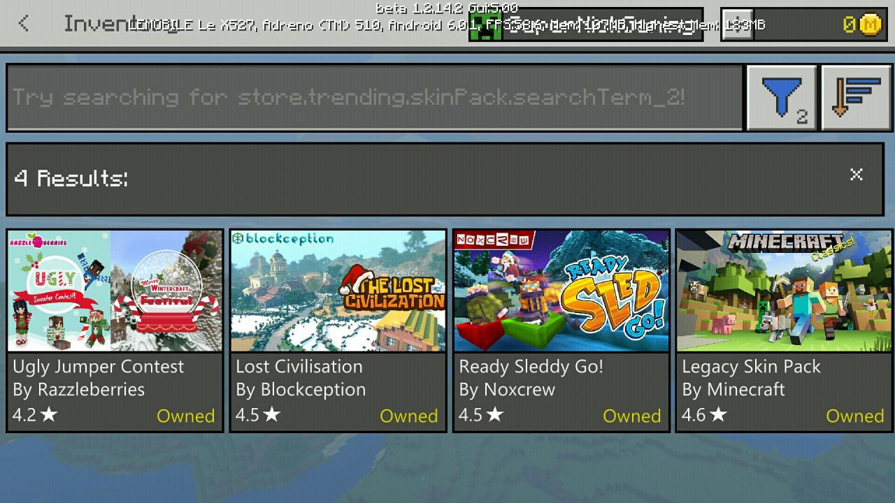 - Добавлен раздел инвентаря для управления контентом, приобретённым в магазине Minecraft.
