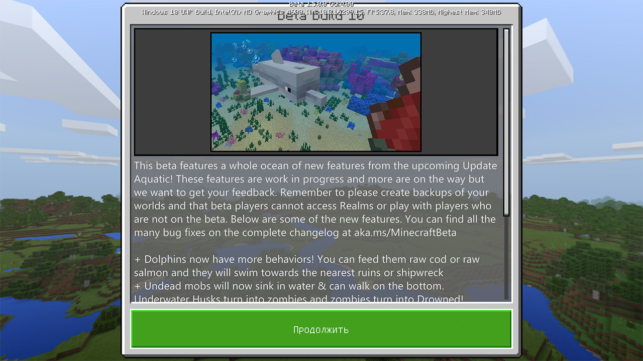 Бета-версия доступна только для устройств под управлением Android и Windows 10, а также на Xbox One. Подробно процедура установки предварительных версий Minecraft рассмотрена здесь.