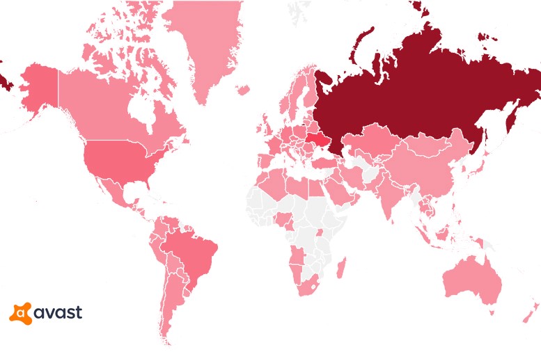 За последние 10 дней было предотвращено 14500 попыток заражения — очевидно речь идёт о попытках скачать такие скины. А география представлена следующим образом.