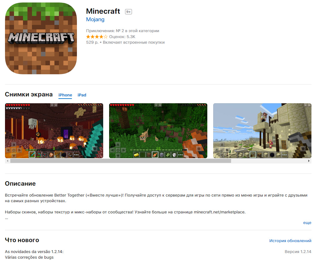 Сегодня владельцы устройств iOS обнаружили, что обновился Minecraft до версии 1.2.14. На сайте feedback.minecraft.net, где обычно публикуются оповещения о выходе новых версий, информации о выпуске новой версии нет. В GooglePlay и Microsoft Store версия с таким номером пока не опубликована.