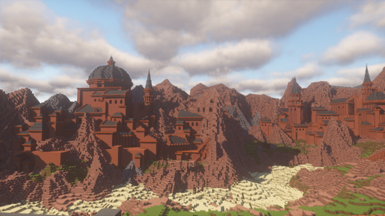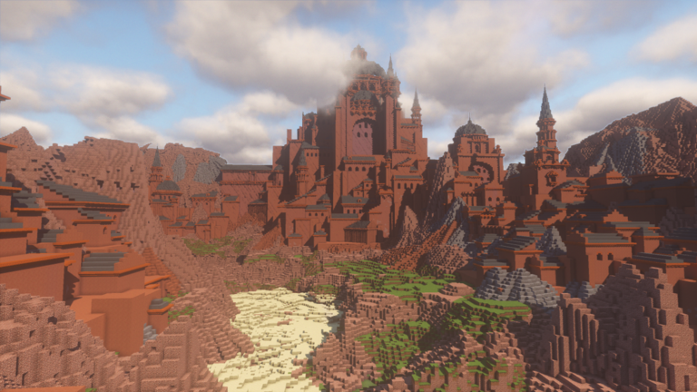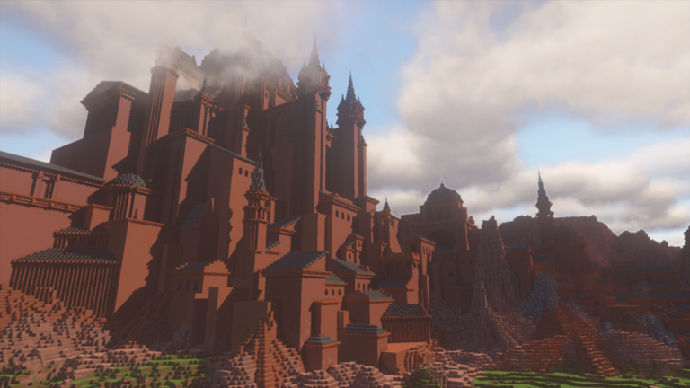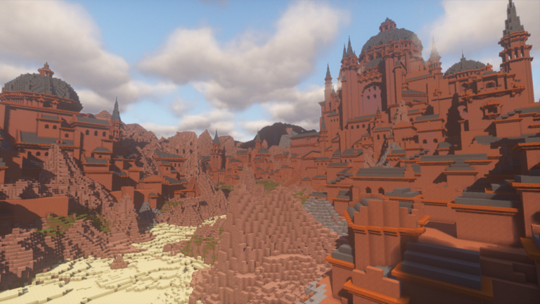 Но архитектура Крэбкода не похожа на настоящий техасский город Каньона. Вмето него он выбрал остроконечные башни, наклонные крыши и замок, более схожий с ближневосточными.