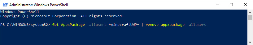 Get-AppxPackage -allusers *minecraftUWP* | remove-appxpackage -allusers