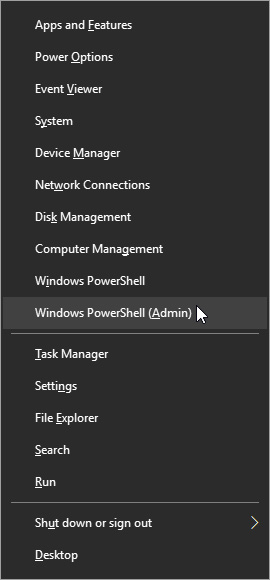 - Запустите PowerShell под администратором. Для этого можно нажать сочетание клавиш Windows + X и выбрать соответствующий пункт в меню.