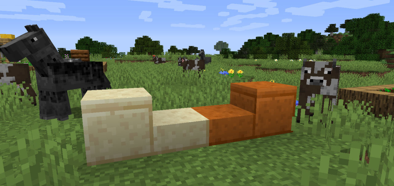Полублоки, конечно, нельзя считать каким-то крутым обновлением. Видно они обнаружили, что у пиленого песчаника нет полублоков и добавили их.