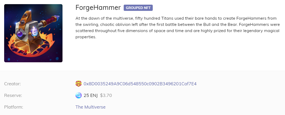 Вот пример игрового предмета, который (теоретически) может оказаться в руках игроков серверов, к которым будет подключен плагин Enjin. Этот молот стоит 25 Enjin Coins (цифровая валюта Enjin) или 3,70 $.