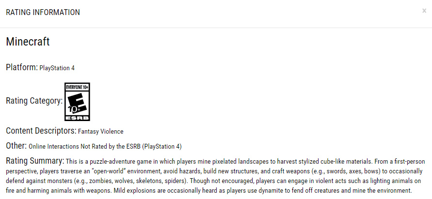 И вот, на сайте Entertainment Software Rating Board (ESRB) появилась информация об игре Minecraft для платформы PlayStation 4.