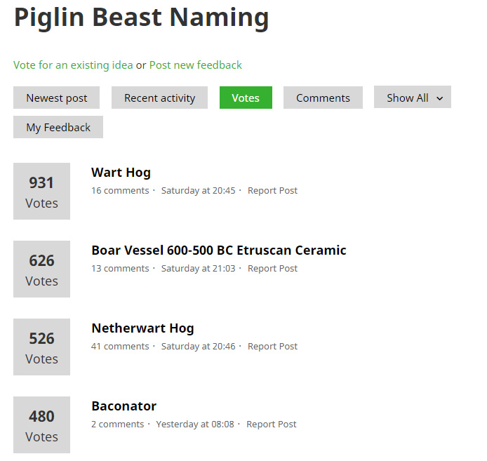 Честно говоря, мне из лидирующих вариантов нравится только Baconator. Wart Hog и Netherwart Hog откровенно скучные, а вариант Boar Vesse 600-500 BC Etruscan Ceramic можно считать продолжением мема из Reddit, но не серьёзным предложением.