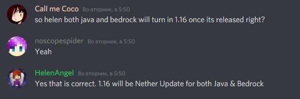 Как я уже упоминал, «Обновление Незера» на платформе Bedrock выйдет под номером 1.16.