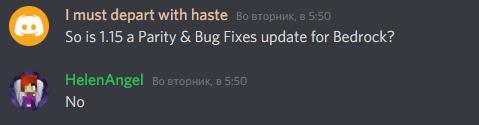 Будущую версию Minecraft 1.15 (Bedrock) игроки окрестили Parity Update, т.е. «Уравнивающим обновлением». Это связано с тем, что основной список изменений в этой версии посвящён реализации в Minecraft Bedrock тех вещей, которые уже есть в Minecraft Java Edition.