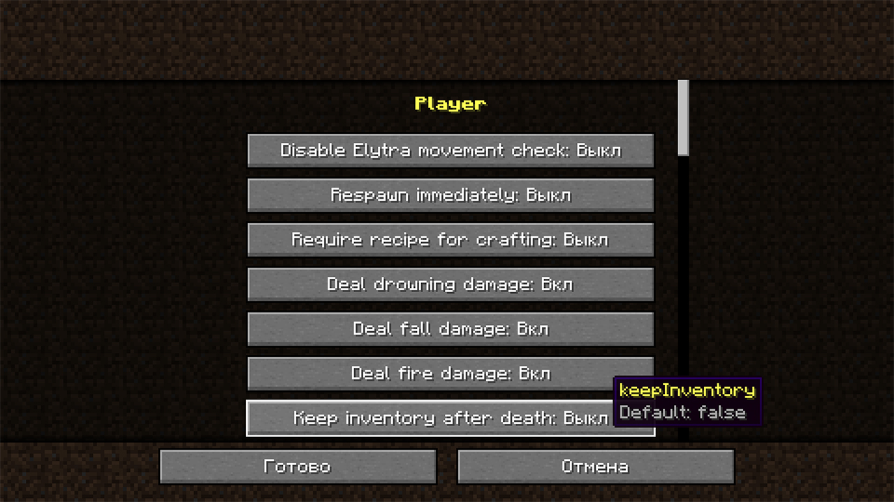 - Сложность и игровые правила можно задавать на экране создания мира.