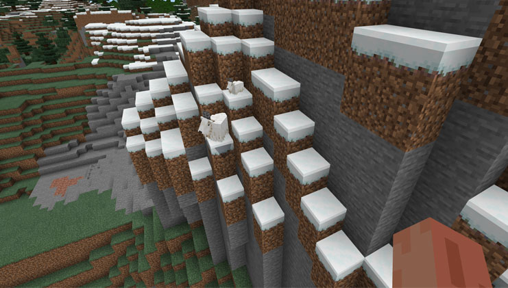 Да, вы прочитали правильно: козлы, которые прыгают, скачут и норовят вас забодать, добавлены в первую бета-версию Minecraft Bedrock из обновления «Пещеры и горы». Эти скачущие по скалам создания можно встретить в биоме огромных гор. Они там… а чем горные козлы обычно занимаются в свободное время? Если не считать того, что они периодически прыгают, таранят любого горного туриста, подошедшего к ним достаточно близко, чтобы отправить его в полёт вниз с горы, на которую он долго взбирался. Дело не в том, что козлы враждебные, просто они слегка пассивно-агрессивны — я это могу понять, пропустив свой завтрак, второй завтрак, обед, ужин и даже кофе!
