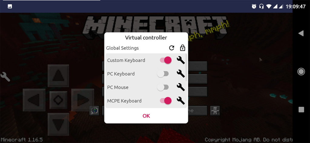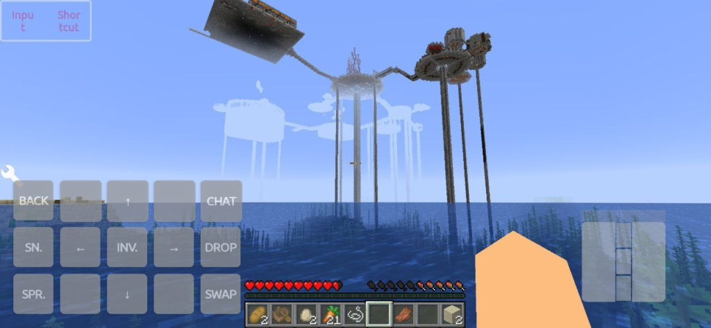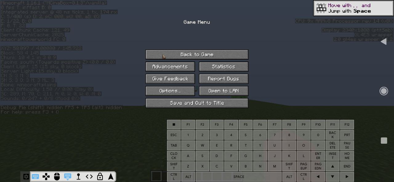 Клавиатура на пол-экрана выглядит, конечно, уродливо, но лишь потому, что я спешил проверить работу мира и не стал делать свою клавиатуру, хотя MCinaBox имеет свой отличный редактор клавиатуры!