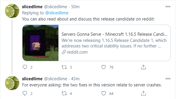 Slisedlime, один из разработчиков Minecraft Java Edition, предупреждая возможные вопросы, написал в Twitter:
