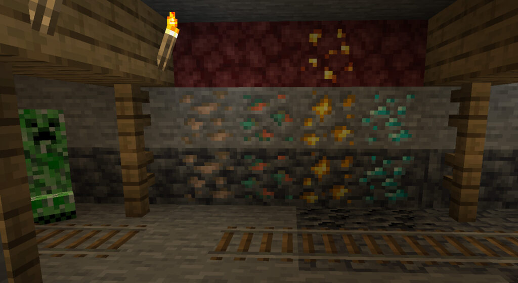 Вместе с глубинным сланцем в игру были добавлены и блоки руды (все виды, на скриншоте только четыре) на его основе.