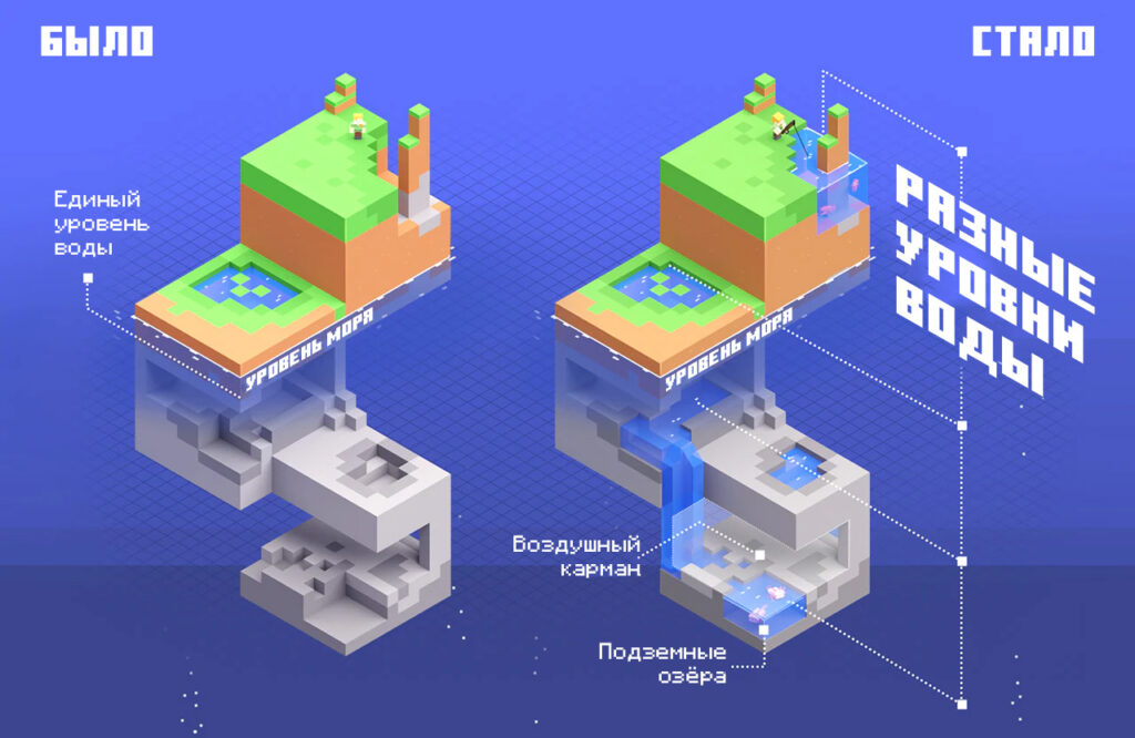 У многих игроков есть миры, в которых они играют уже давно. Смешивание или размытие границ между старой и новой генерацией предоставляет им возможность продолжить играть в этом же мире в Minecraft 1.18, без создания нового мира.