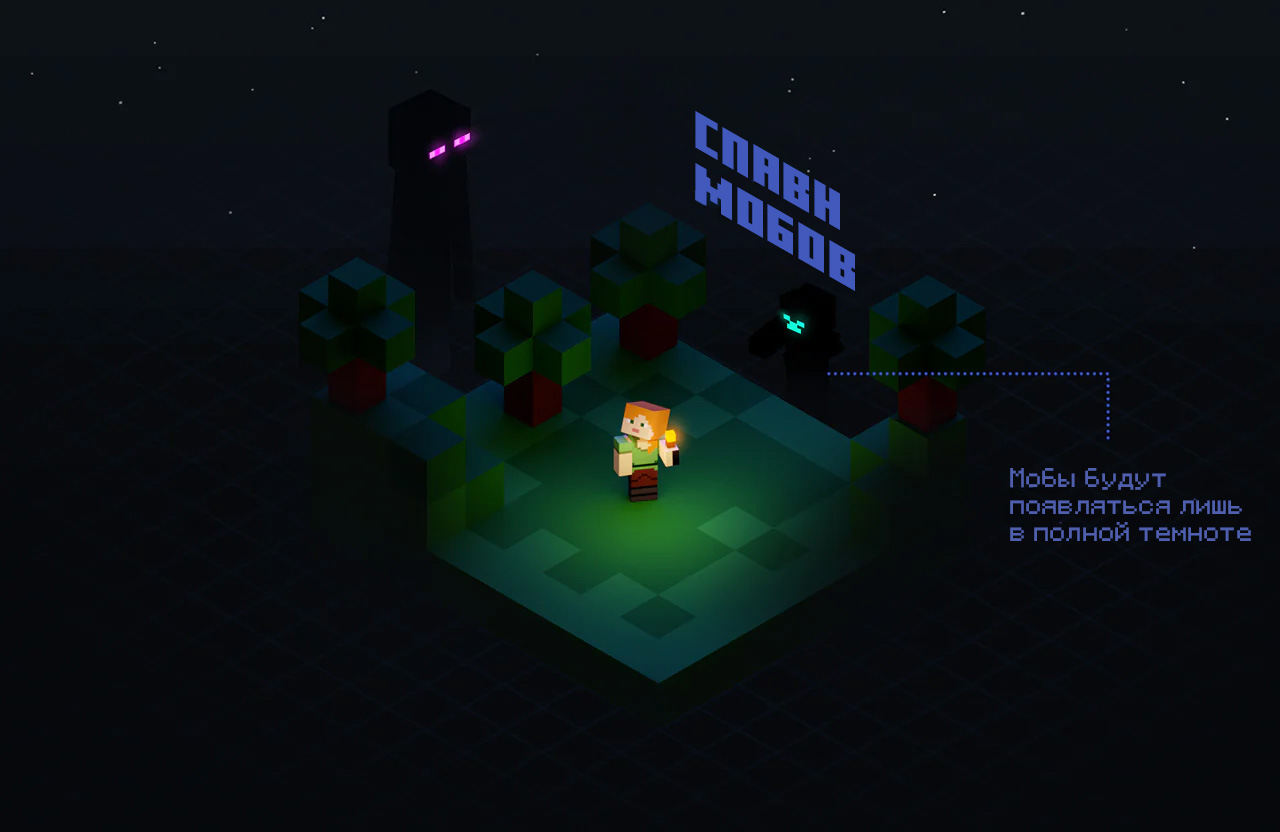Произошли большие изменения в том, как осуществляется спавн мобов в обновлении «Пещеры и горы. Часть II» — мобы теперь будут спавниться в полной темноте. Страшно!