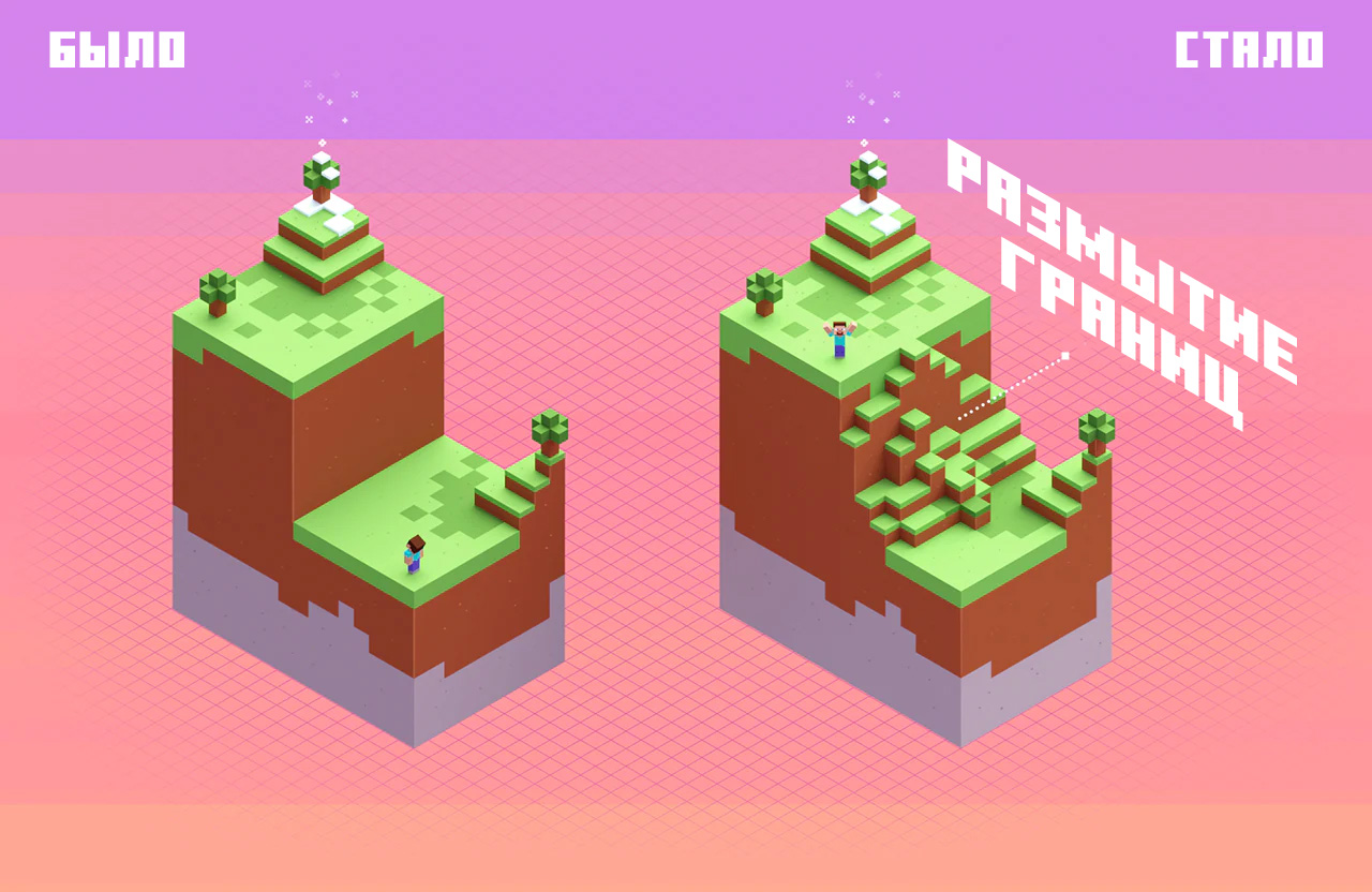 Сглаживание мира соединит существующие чанки мира с вновь созданными, сделав переход естественным, без каких-то резко обрывающихся границ.