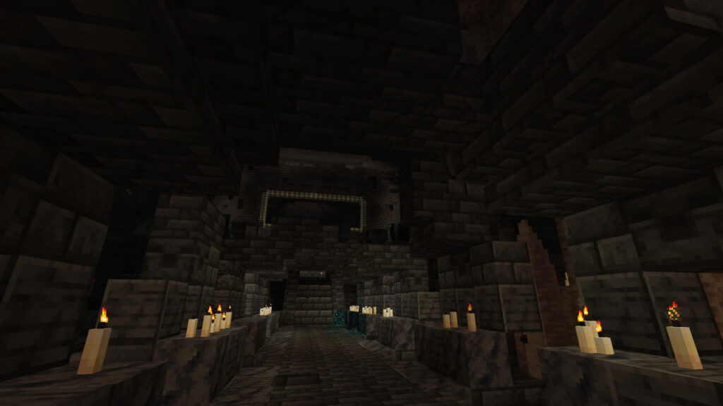 - Полы тёмных подземелий покрыты скалковыми блоками.