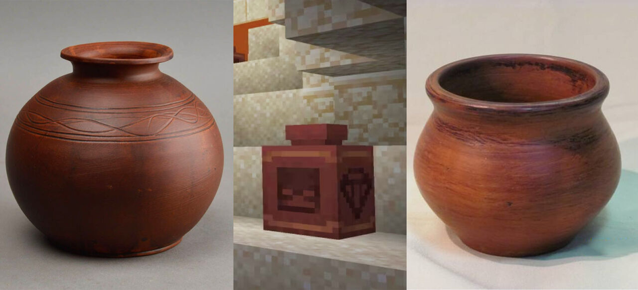 И этот горшок не похож на то, что у нас есть в Minecraft. У него была характерная форма, главная особенность — это очень широкое горло.