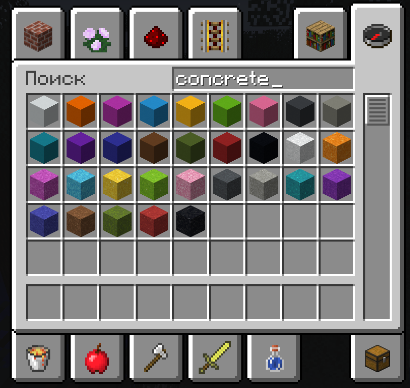 2. Будут добавлены новые цветные блоки: цементный блок (concrete powder block) и бетонный блок (concrete block).