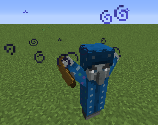 2. Новый моб — Иллюзор (Illusioner). Иллюзор — враждебный моб, атакующий игроков, жителей деревень, железных големов с расстояния 12 блоков. На игрока он накладывает эффект ослепления. На себя же он может наложить эффект невидимости и призвать четыре иллюзии, изображающих его самого.