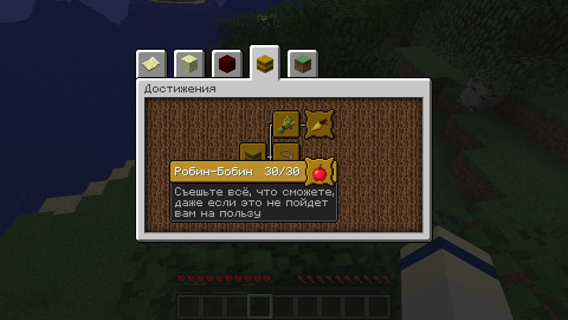 При получении достижения будет выводиться всплывающее уведомление, в книгу рецептов могут добавляться рецепты и т.п.